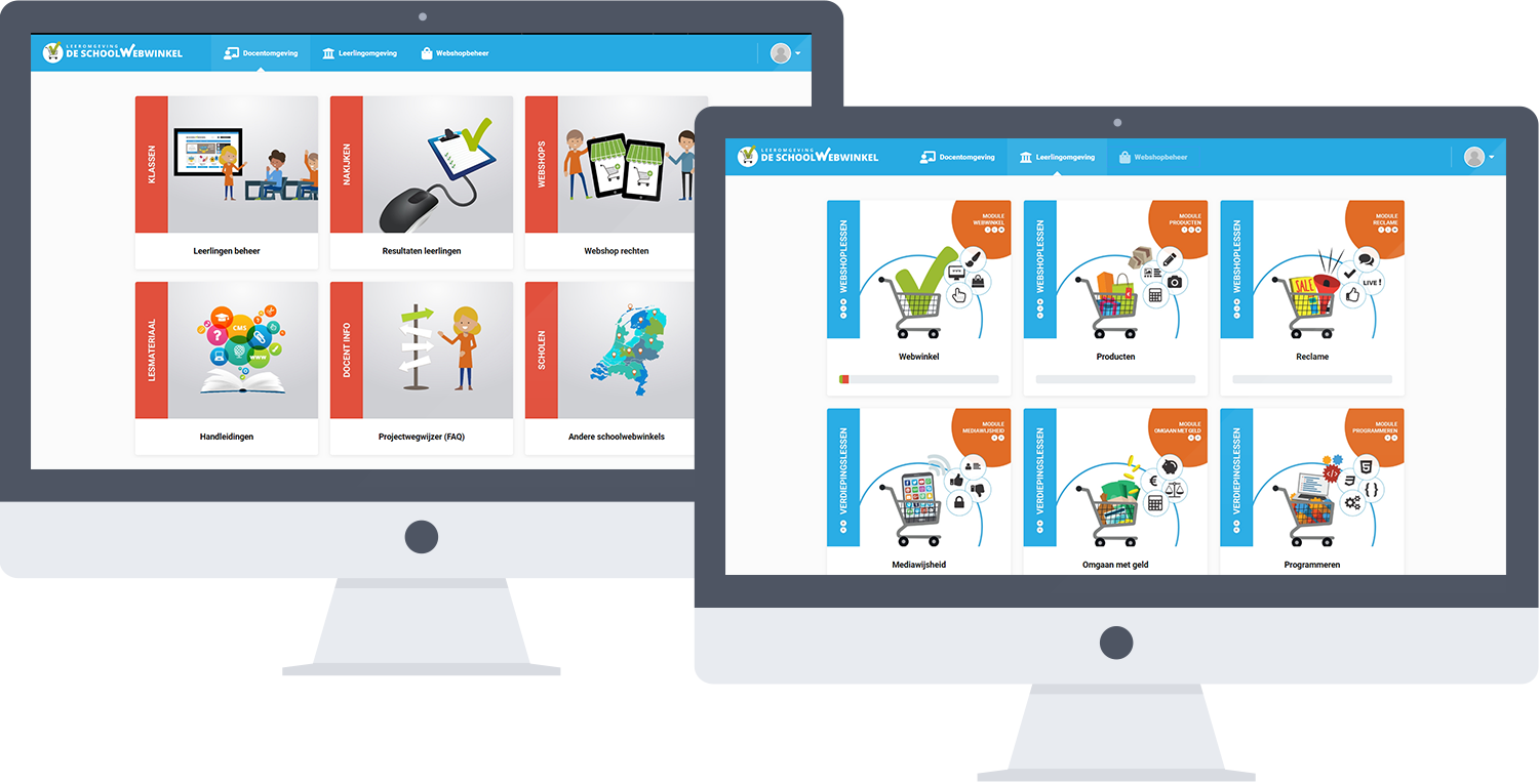 • De leerkracht heeft vanuit het platform toegang tot het leerlingen- en webshopbeheer. En tevens tot de lesvoorbereidingen en de ELO van de leerlingen.